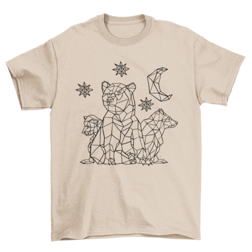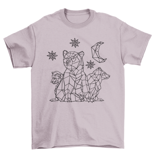 Precioso diseño de camiseta con osos con luna y estrellas en estilo poligonal