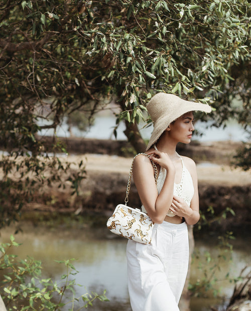 Bolso de mano de tigre de Sumatra, blanco marfil